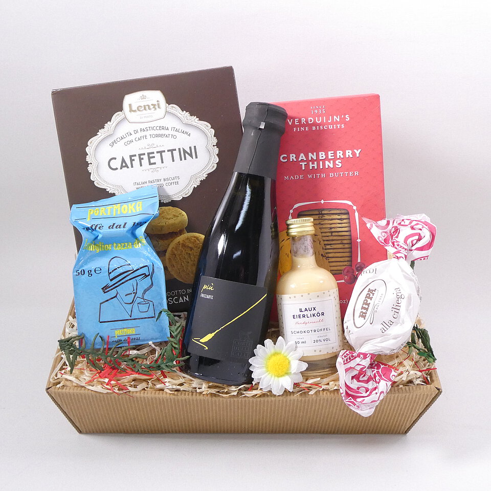 GeschenkIdee "Kaffee-Klatsch" – im Präsentkorb mit Folie verpackt
