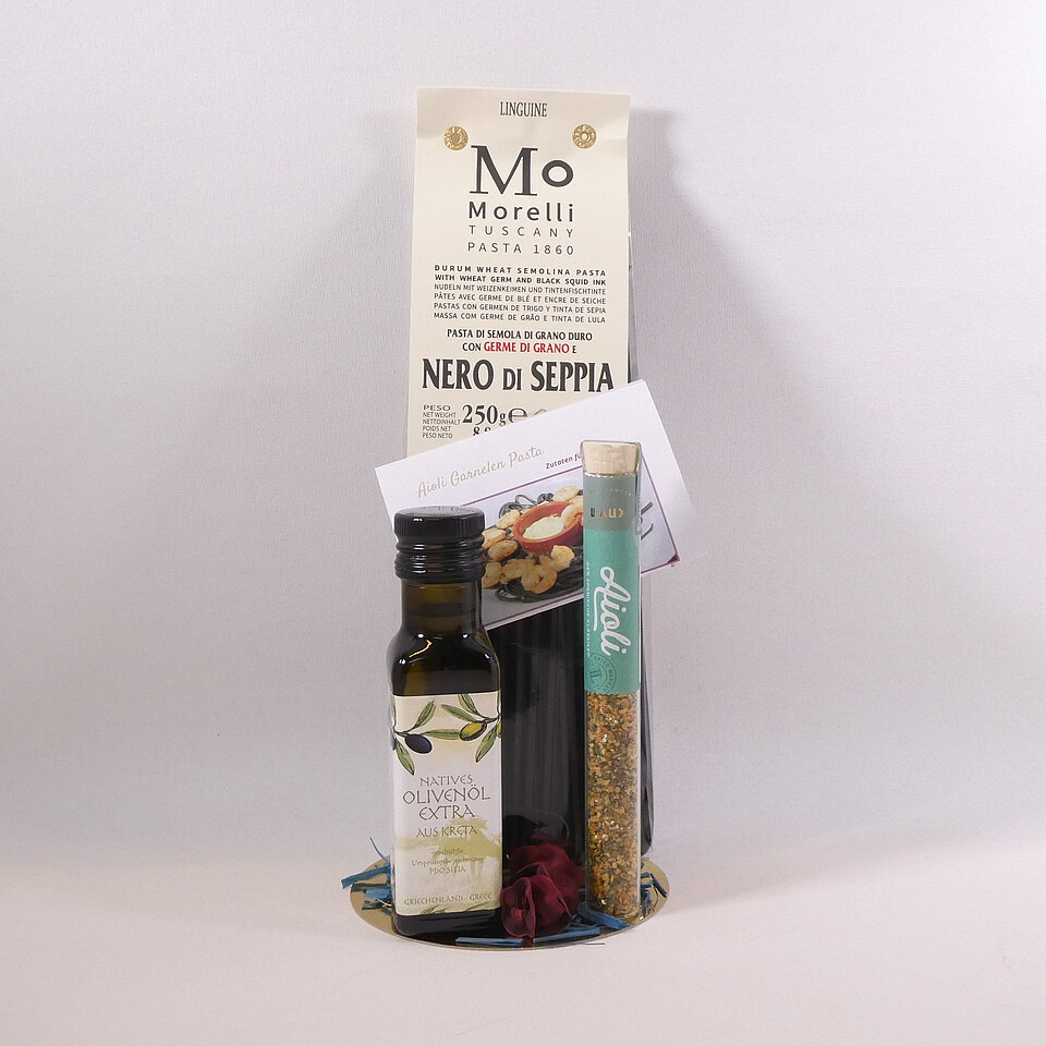 GeschenkIdee "Aioli Garnelen Pasta" - mit Rezept – in Folie verpackt