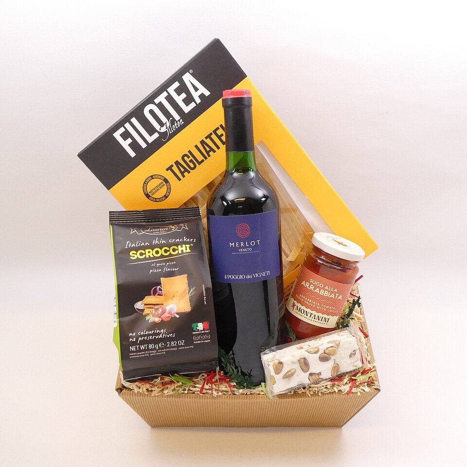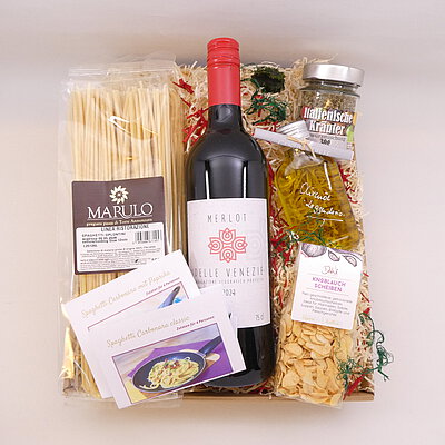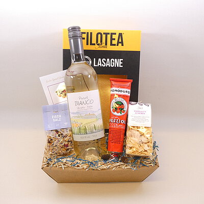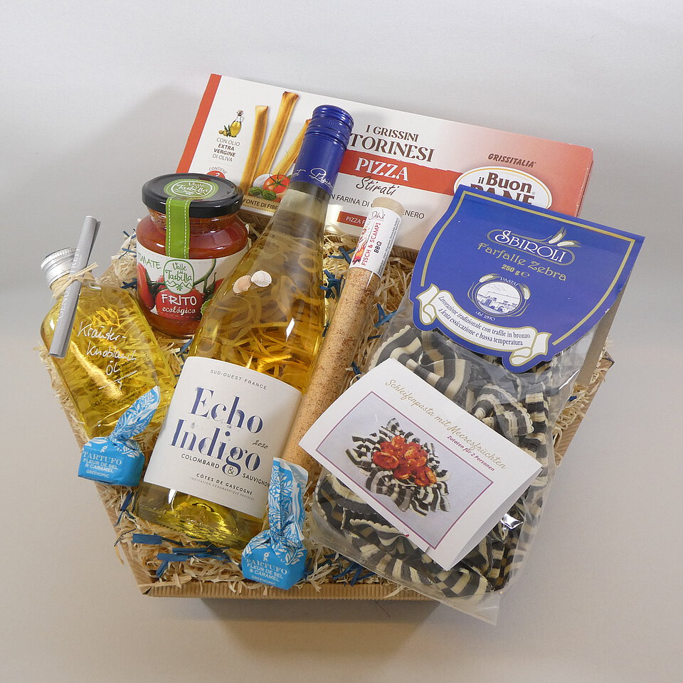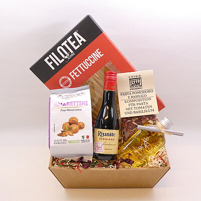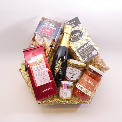 GeschenkIdee "Leckeres Italien" – im Präsentkorb mit Folie verpackt
