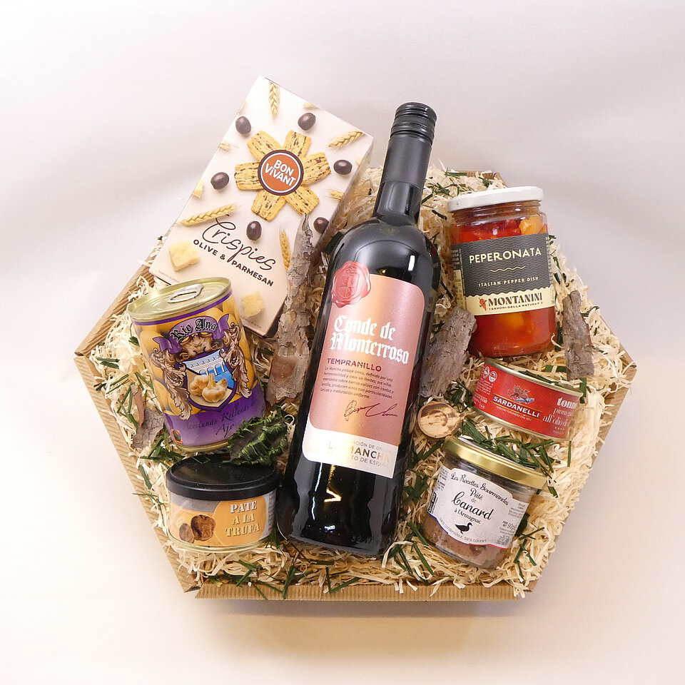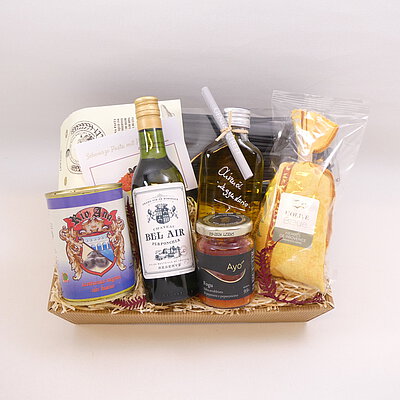 GeschenkIdee "Exquisite Küche" – im Präsentkorb mit Folie verpackt