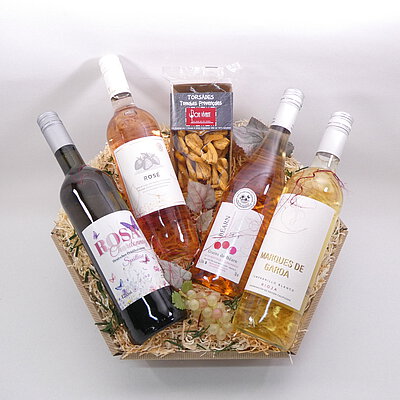GeschenkIdee "Sommerweine" – im Präsentkorb mit Folie verpackt