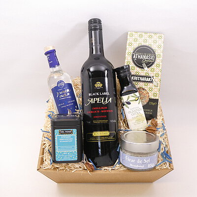 GeschenkIdee "Griechenland" – im Präsentkorb mit Folie verpackt