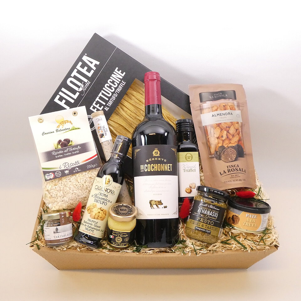 GeschenkIdee "Trüffel" – im Präsentkorb mit Folie verpackt