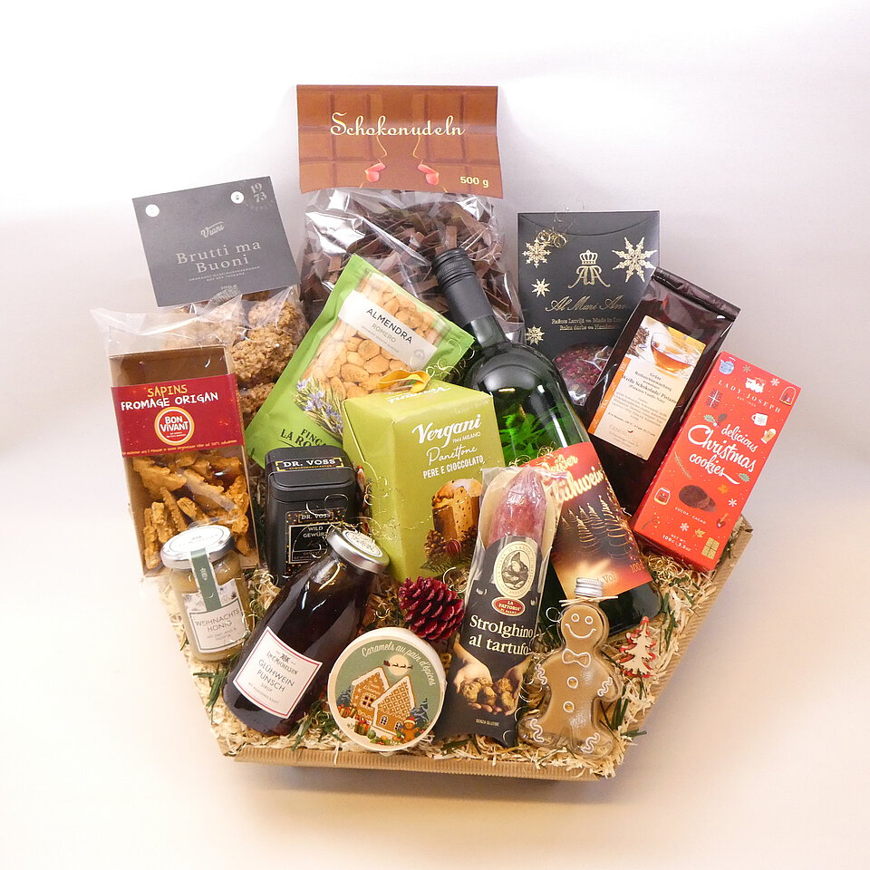GeschenkIdee "Weihnachten XXL" – im Präsentkorb mit Folie verpackt