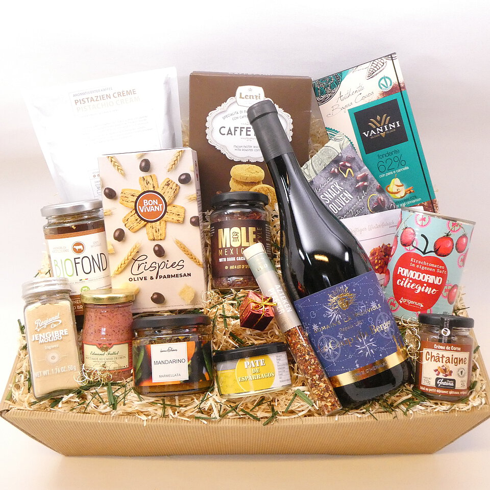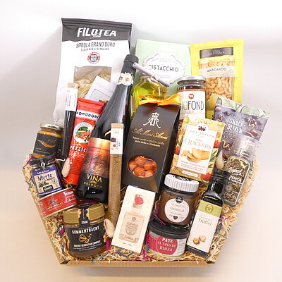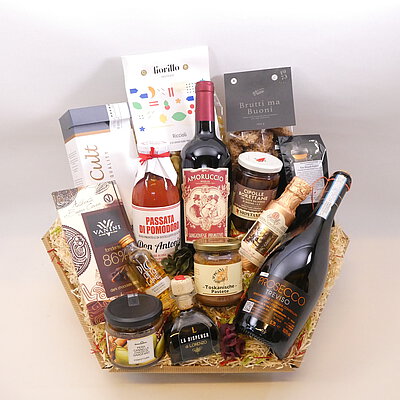 GeschenkIdee "Großer Italiener" – im Präsentkorb mit Folie verpackt