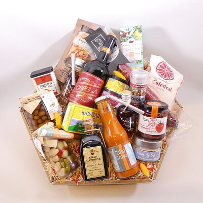 GeschenkIdee "Spanien XXL" – im Präsentkorb mit Folie verpackt