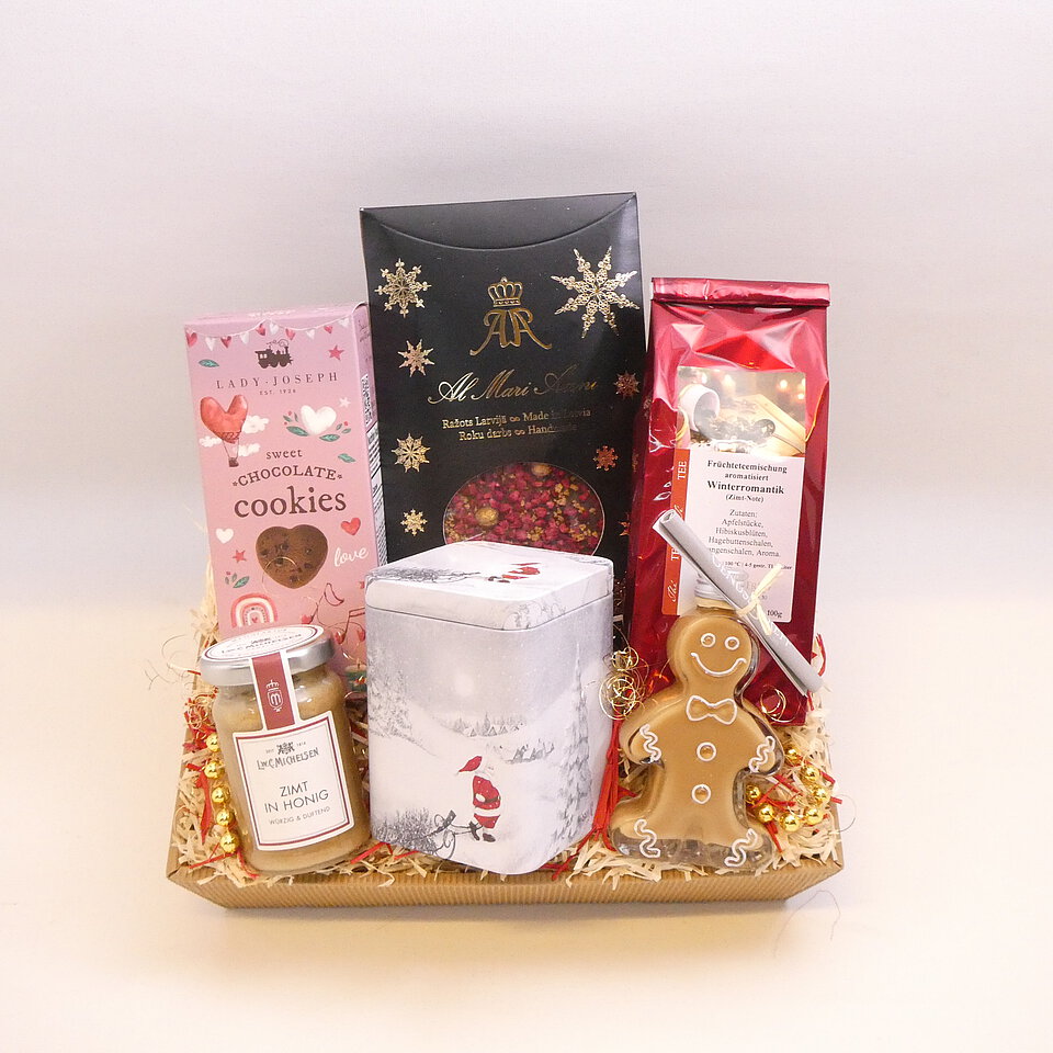 GeschenkIdee "Winterromantik" – im Präsentkorb mit Folie verpackt