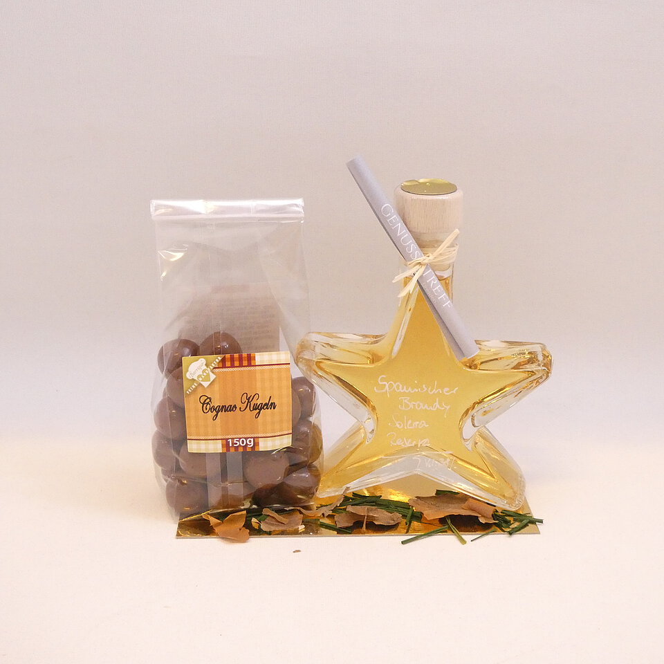 - 100 ml spanischer Brandy in handbeschrifteter Sternflasche