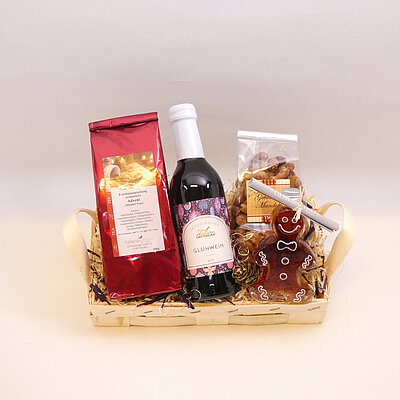 GeschenkIdee "Weihnachtsnachmittag" – im Präsentkorb mit Folie verpackt