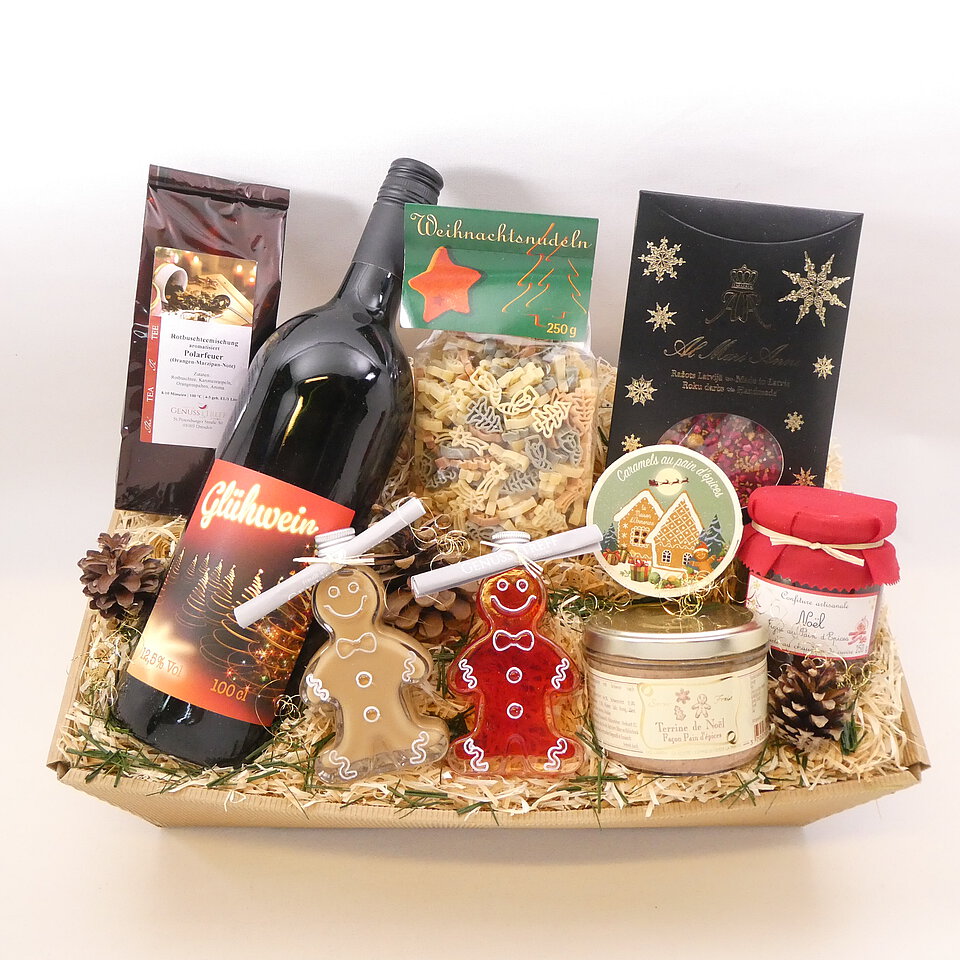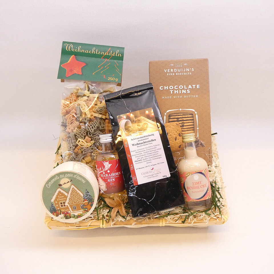 GeschenkIdee "Weihnachtliches Allerlei" – im Präsentkorb mit Folie verpackt