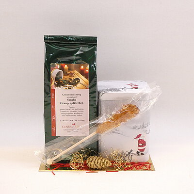- 1 Packung Grüner Tee “Sencha Orangenplätzchen”