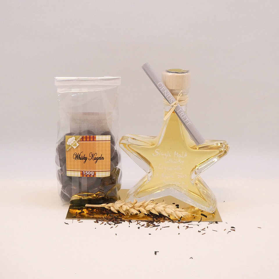 - 100 ml schottischer Whisky in handbeschrifteter Sternflasche