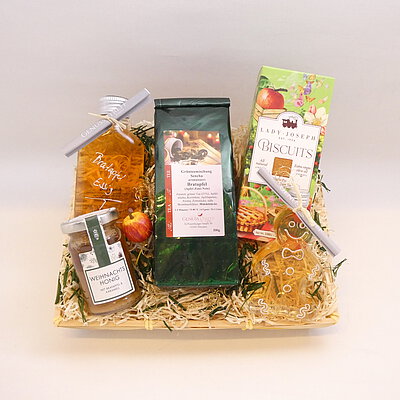GeschenkIdee "Bratapfel" – im Präsentkorb mit Folie verpackt