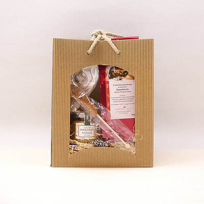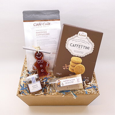 - 1 Packung Kaffee “Marzipan-Cappuccino” (ganze Bohnen)