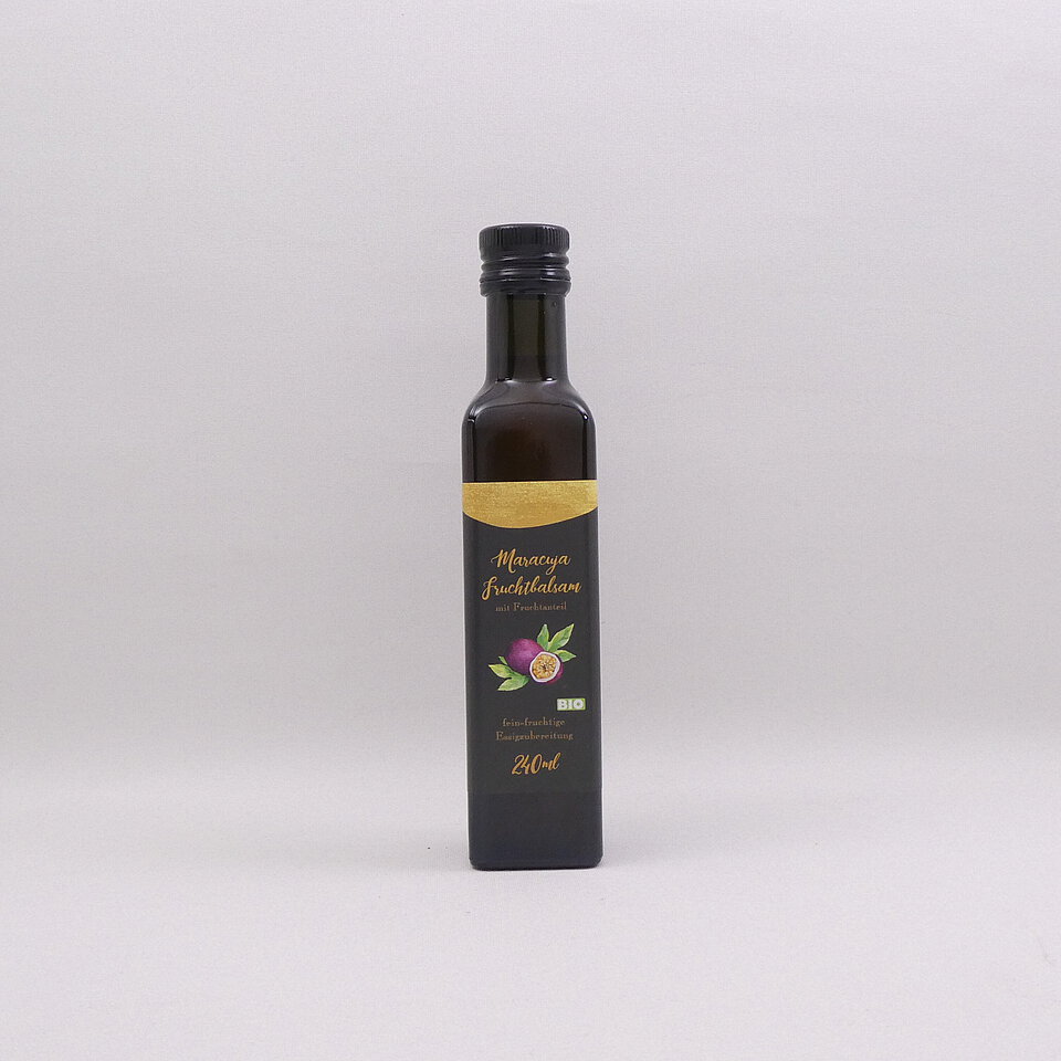 Dieser Maracuja-Balsam ist eine delikate, fein-fruchtige Essigspezialität mit exotischem Touch. Der Geschmack ist intensiv und leicht säuerlich-süß, lebendig und erfrischend.