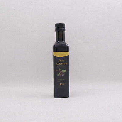 Schon die tiefrote Farbe dieser Essig-Spezialität verspricht intensiven Geschmack. Dieser Balsam vereint die herb-säuerliche Art der Aronia-Beere mit fruchtiger Süße. Sein Geschmack ist abgerundet und aromatisch.