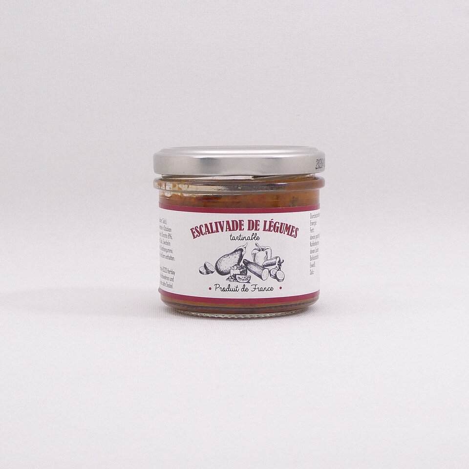 Herzhafter Aufstrich aus Paprika, Aubergine, Zucchini, Tomaten, Karotte, Schalotten, Zwiebeln und Olivenöl.