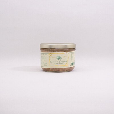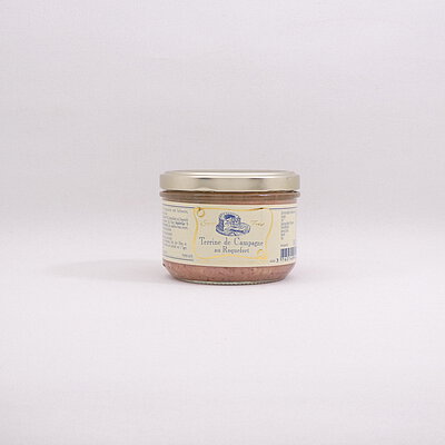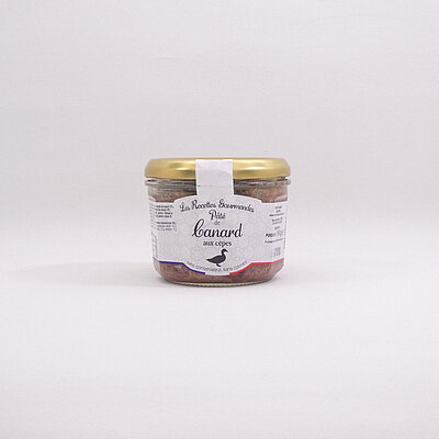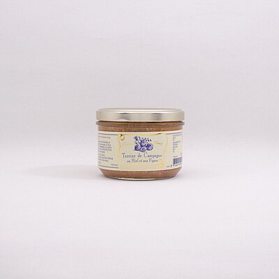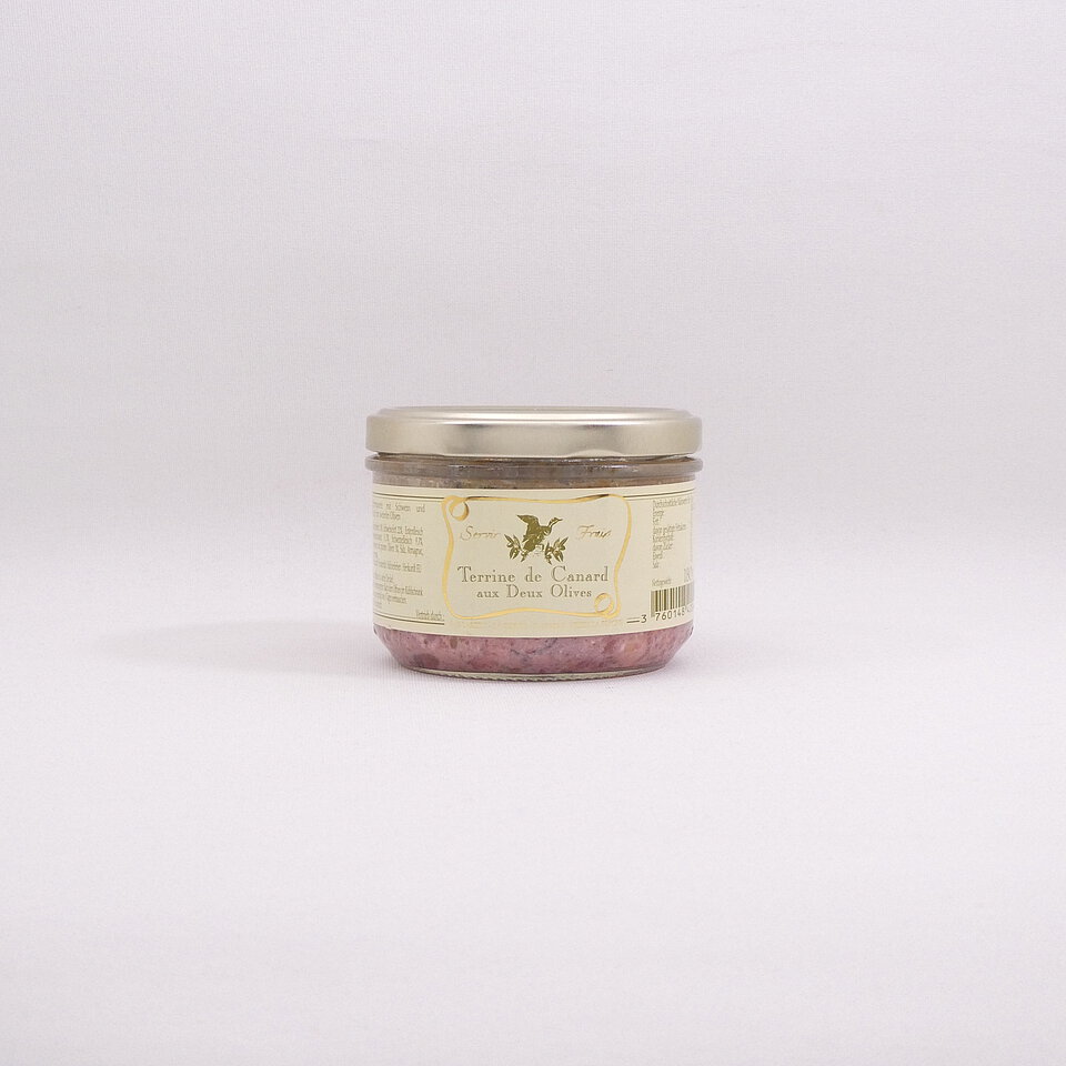 mit 20% Entenfleisch, 3% grünen und schwarzen Oliven, verfeinert mit etwas Armagnac