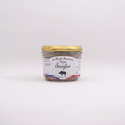 mit 30% Wildschweinfleisch, 7% Merlot und 2,5% Heidelbeeren