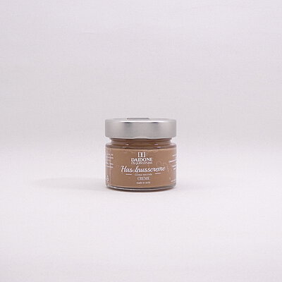 Vollmundige Haselnusscreme ohne Palmfett mit kleinen Haselnussstückchen.