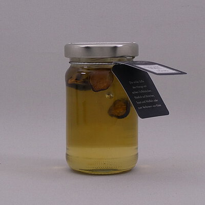 Olio con tartufo bianco – Olivenöl mit weissen Trüffelscheiben