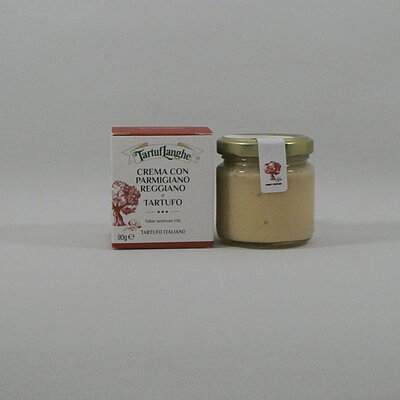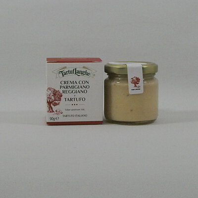 Parmigiano Reggiano-Trüffelcreme (authorisiert vom Consorzio del Parmigiano Reggiano). Herrliche Käsecreme aus Parmigiano Reggiano und Trüffel (Tuber aestivum Vitt.). Ideal zu Pasta, Risotto, Gnocchi, Spargel, Gemüse, Brot und Croutons.